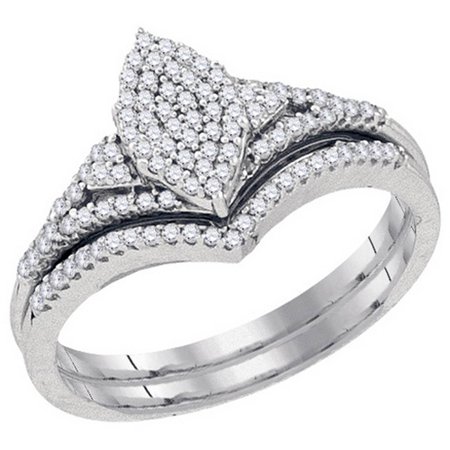 Ladies White Gold Micro Pave Diamond Fashion Bridal Ring Set 0.33CT
