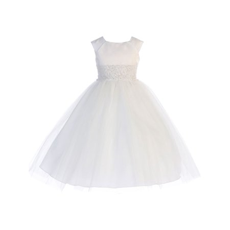 <ul> <li>Elegant and delicate gown by Princess Diaries a perfect addition to her collection</li> <li>This satin dress has a beautiful lace embroidery on waist</li> <li>Features tea length tulle bottom</li> <li>Satin, Lace, Tulle</li> <li>Sizing is based on U.S. clothing size standards</li> </ul>