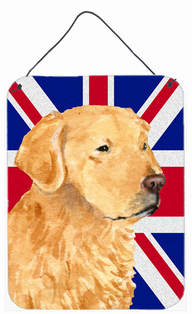 Carolines Treasures SS4918DS1216 Golden Retriever With English Union Jack British Flag Aluminum Metal Wall Or Door Hangi