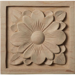 Ekena Millwork ROS03X03DGMA Medium Dogwood Flower Square Rosette, 3 1/2"W x 3 1/2"H x 3/4"P, Maple