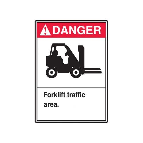Accuform MVHR017VS Sign, Legend "Danger Forklift Traffic Area", 14" Length x 10" Width x 0.004" Thickness, Adhesive Vinyl, 14" x 10", Red/Black on White