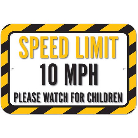 <br /> <b>Speed Limit 10 MPH Please Watch For Children Sign:</b> <ul> <li>9" x 6" aluminum indoor/outdoor sign</li> <li>Printed with UV resistant inks for durability</li> <li>Pre-drilled holes for mounting</li> </ul>