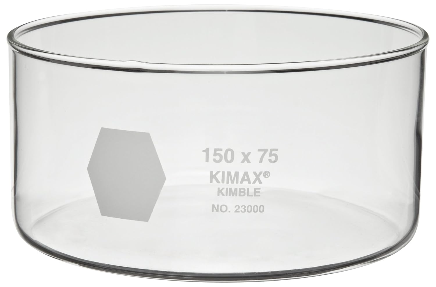 These flat 150mm Kimax dishes have approximately a 1200mL capacity with rims that are reinforced and fire polished to reduce chipping. Diameter: 150mm. Height: 75mm. Kimble #: 23000-15075.