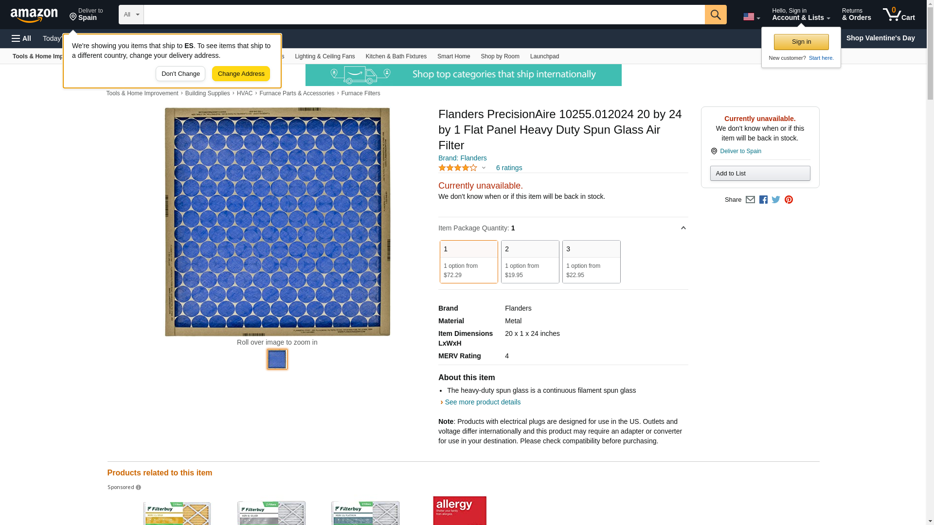 Flanders PrecisionAire 10255.012024 20 by 24 by 1 Flat Panel Heavy Duty Spun Glass Air Filter