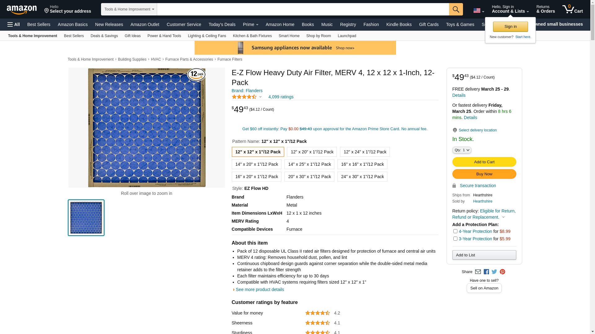 E-Z Flow Heavy Duty Air Filter, MERV 4, 20 x 24 x 1-Inch, 12-Pack