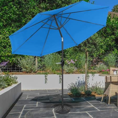 10-Foot Patio Umbrella with Base, Brilliant Blue
