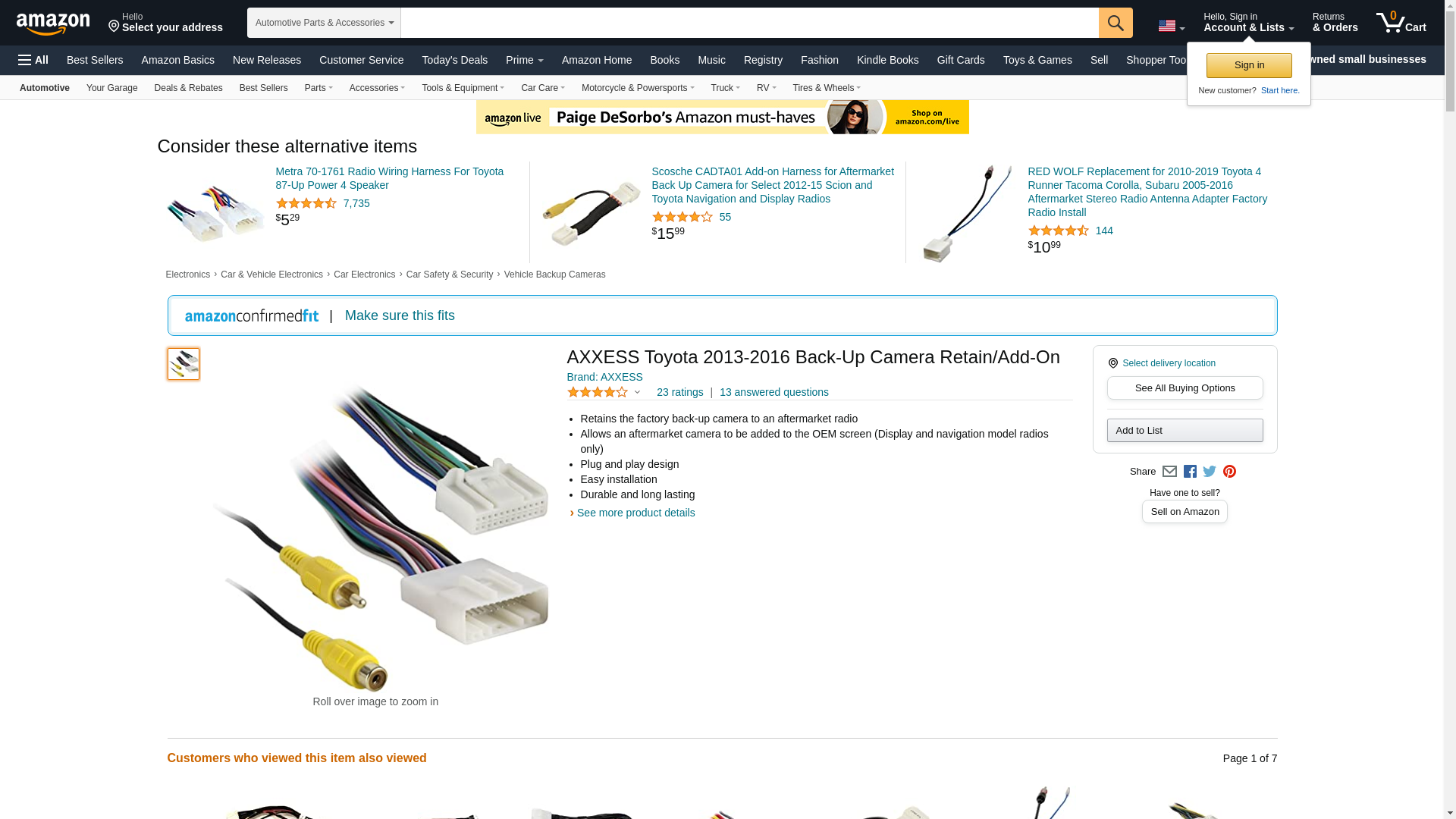 Toyota 2013-2016 Back-Up Camera Retain/Add-On Harness