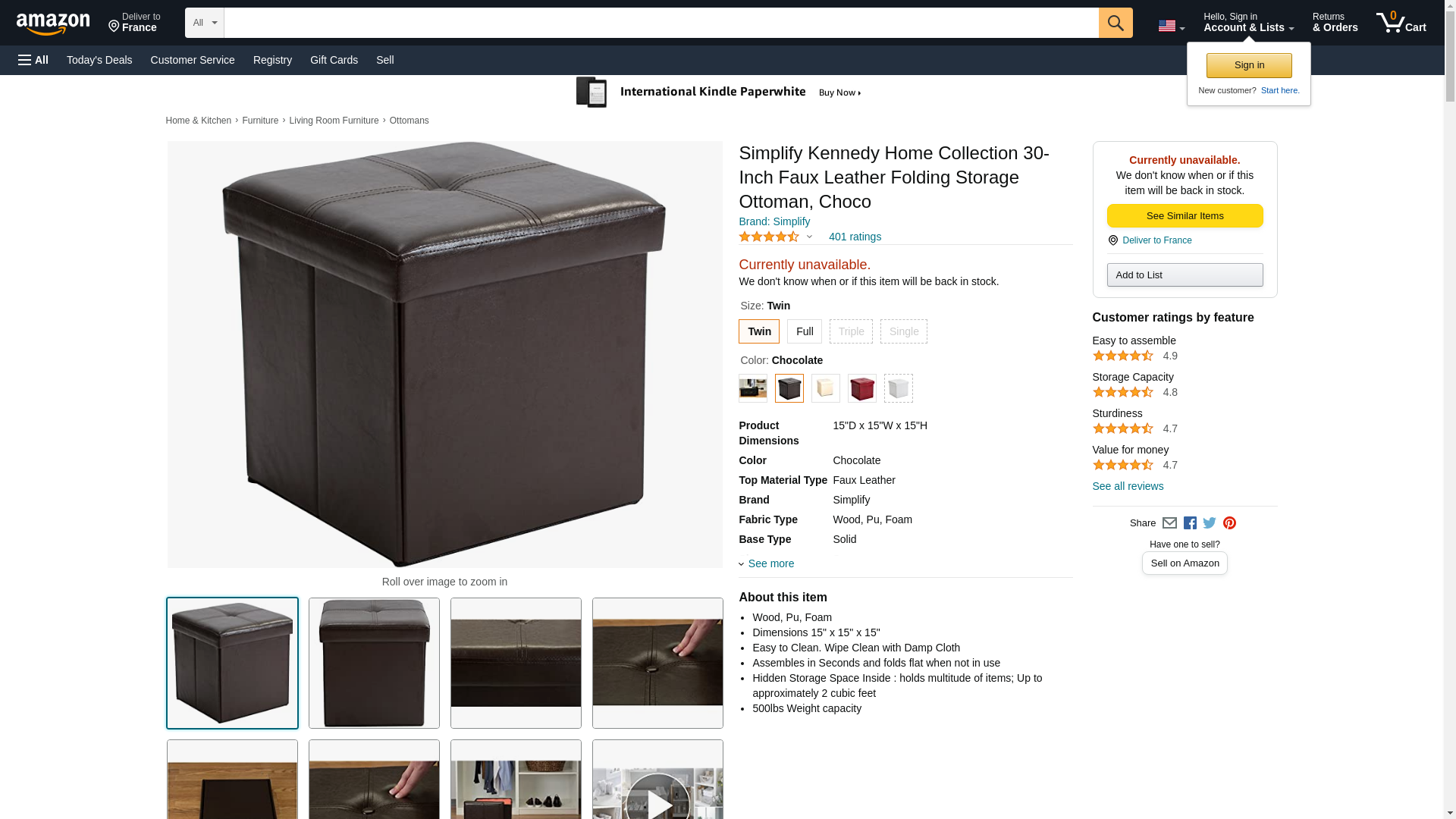 Simplify Folding Storage Ottoman, Toy Box Chest, Faux Leather,Tufted Padded Seating, Bench, Foot Rest, Stool, Single, Chocolate