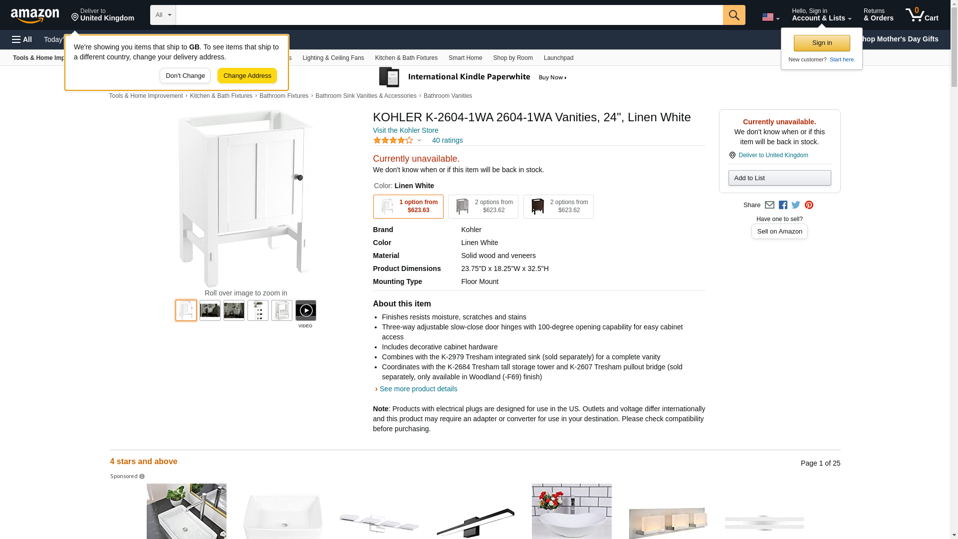 KOHLER K-2604-1WA 2604-1WA Vanities, 24", Linen White