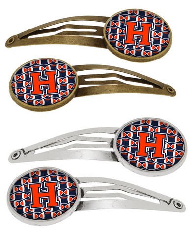Carolines Treasures CJ1066-HHCS4 Letter H Football Orange, Blue & White Barrettes Hair Clips - Set of 4