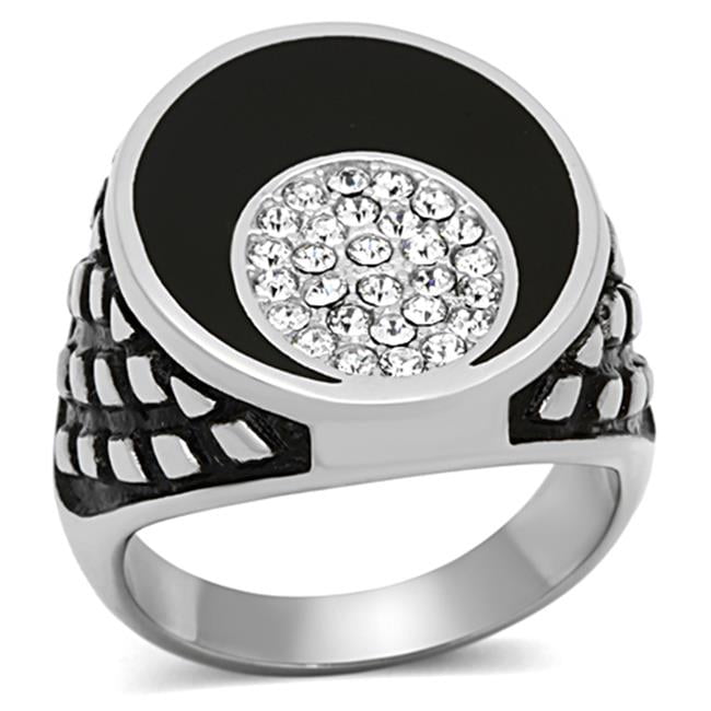 Alamode TK1200-11 Men High Polished Stainless Steel Ring with Top Grade Crystal in Clear - Size 11