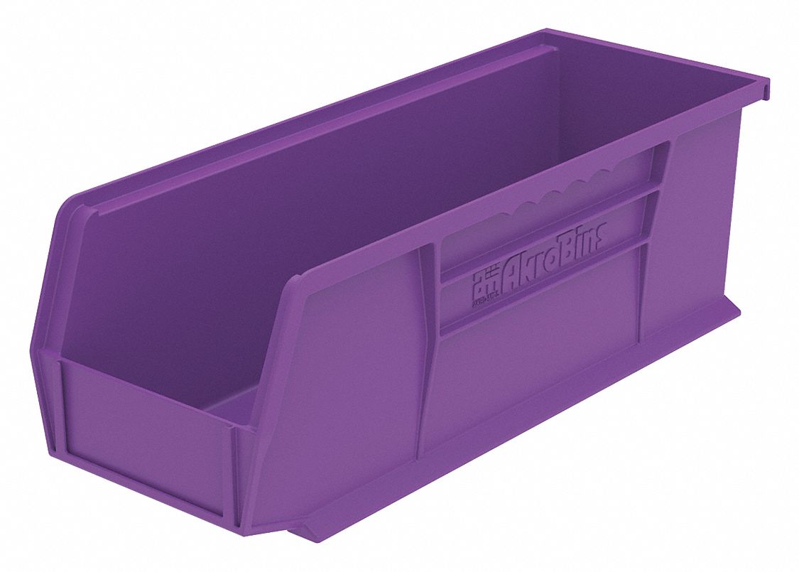 AkroBin® , 14-3/4“ x 5-1/2“ x 5“ , Color: Purple, 12/CartonAkroBin® Optimize your storage space.Available in 14 sizes and 7 colors: Red, Yellow, Blue, Stone, Green, Semi-Clear and Black. Optimize your storage space. Control inventories, shorten assembly times and minimize parts handling. Heavy-duty polypropylene bins hang from Akro-Mils racks, panels, rails, and carts securely stack atop each other and sit on shelving. AkroBins® are unaffected by weak acids and alkalis. Sturdy, one-piece construction is water, rust and corrosion proof and guaranteed not to break. Autoclavable up to 250° F. Product photo may not exactly match the product offered for sale. Please refer to the product description.
