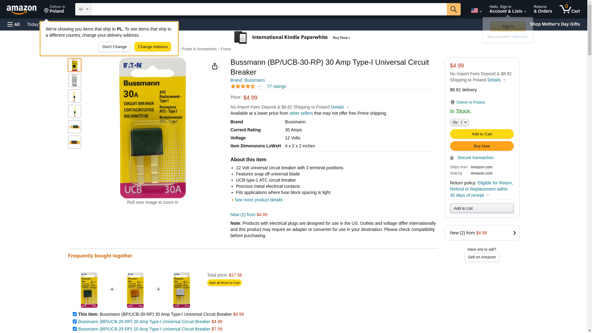 | Feature | Bussmann BP/UCB30RP 30 AMP TYPE I UN - (1 Each) |