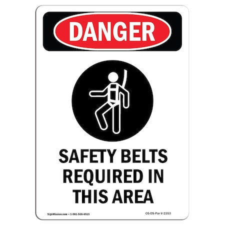 OSHA Danger Sign, Safety Belts Required, 10in X 7in Rigid Plastic