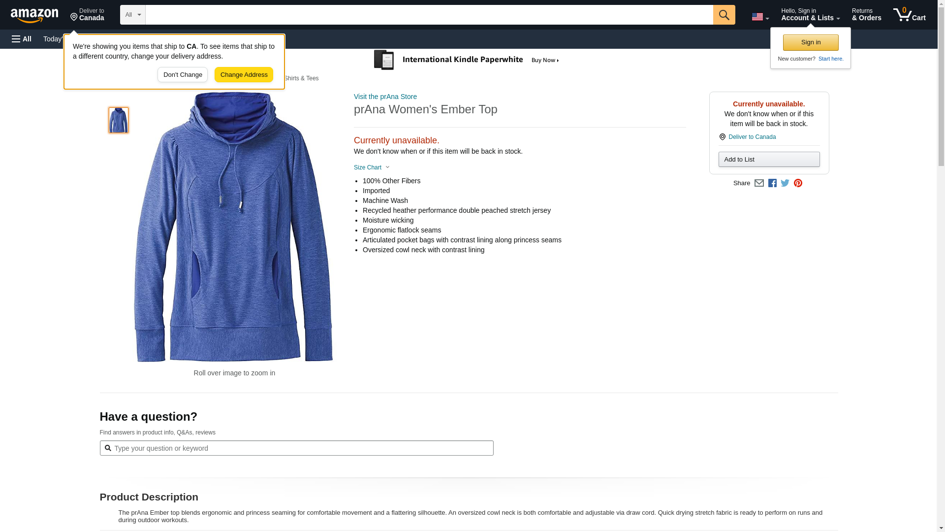 prAna Women's Ember Top, Cobalt, Medium