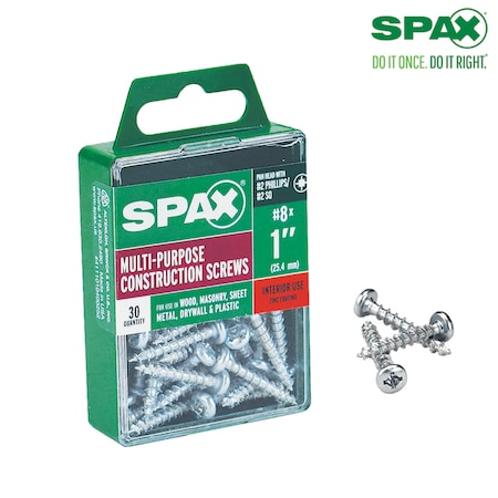 Spax 4111010400252 Multi-material Screw, Phillips, 8'' X 1'', Box 30 (Pack of 5)