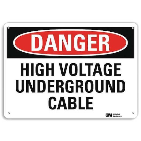Danger Sign, Horizontal Rectangle, Number of Printed Sides 1, English, Sign Format Traditional OSHA, Sign Legend High Voltage Underground Cable, Sign Legend Background Color White, Sign Legend Style Text
