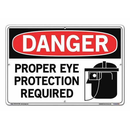 Vestil SI-D-53-D-AL-063 PROPER EYE PROTECTION REQUIRED Danger Sign, Aluminum, 0.063" Overall Size, 18.5" W x 12.5" H