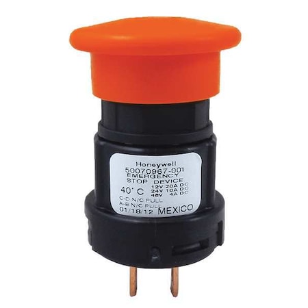 | Feature | <b>Price For:</b> Each <b>Type of Operator</b>: 45mm Push-Pull Knob <b>Terminal Connection</b>: Screw Clamp <b>Legend</b>: No Legend <b>Contact Form</b>: 1NO/1NC <b>Size</b>: 22mm <b>Number of Operators</b>: 1 <b>Material</b>: Plastic <b>IP Rating</b>: 67 <b>Item</b>: Emergency Stop Push Button <b>Contact Rating</b>: 10A @ 24VDC, 20A @ 12 to 14VDC <b>Color</b>: Red <b>Head Material</b>: Acetyl <b>Action</b>: Maintained Push / Maintained Pull |