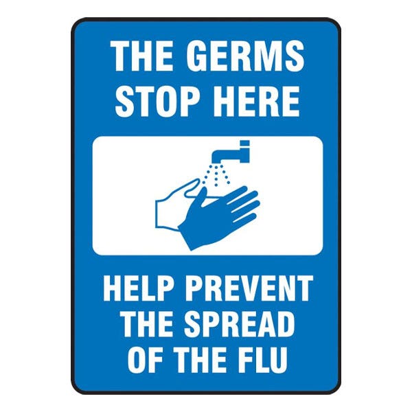 Accuform Safety Sign: The Germs Stop Here Help Prevent The Spread Of The Flu - Dura-Fiberglass (14" x 10") MRST599XF - Filmtools