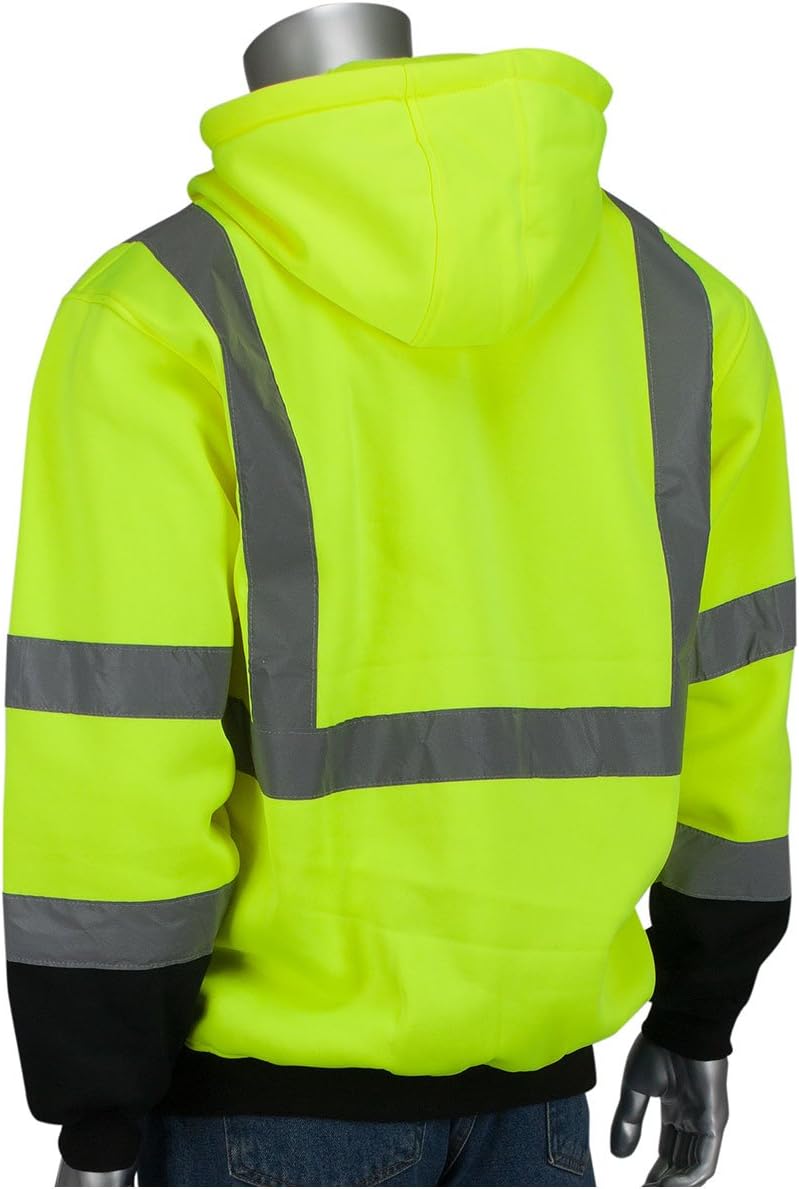 ANSI Type R Class 3 Full Zip Hooded Sweatshirt with Black Bottom 323-1370B-LY/M, (20)