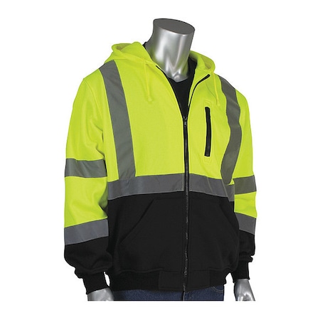 PIP CLASS 3 ZIP FRONT HOODIE, BLACK BOTTOM, (323-1370B-LY/M) (20/each)