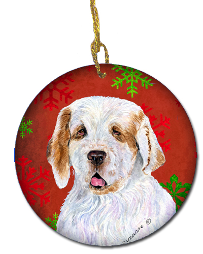 Caroline's Treasures SS4707-CO1 Clumber Spaniel Red and Green Snowflakes Holiday Christmas Ceramic Ornament, 3 in, Multicolor