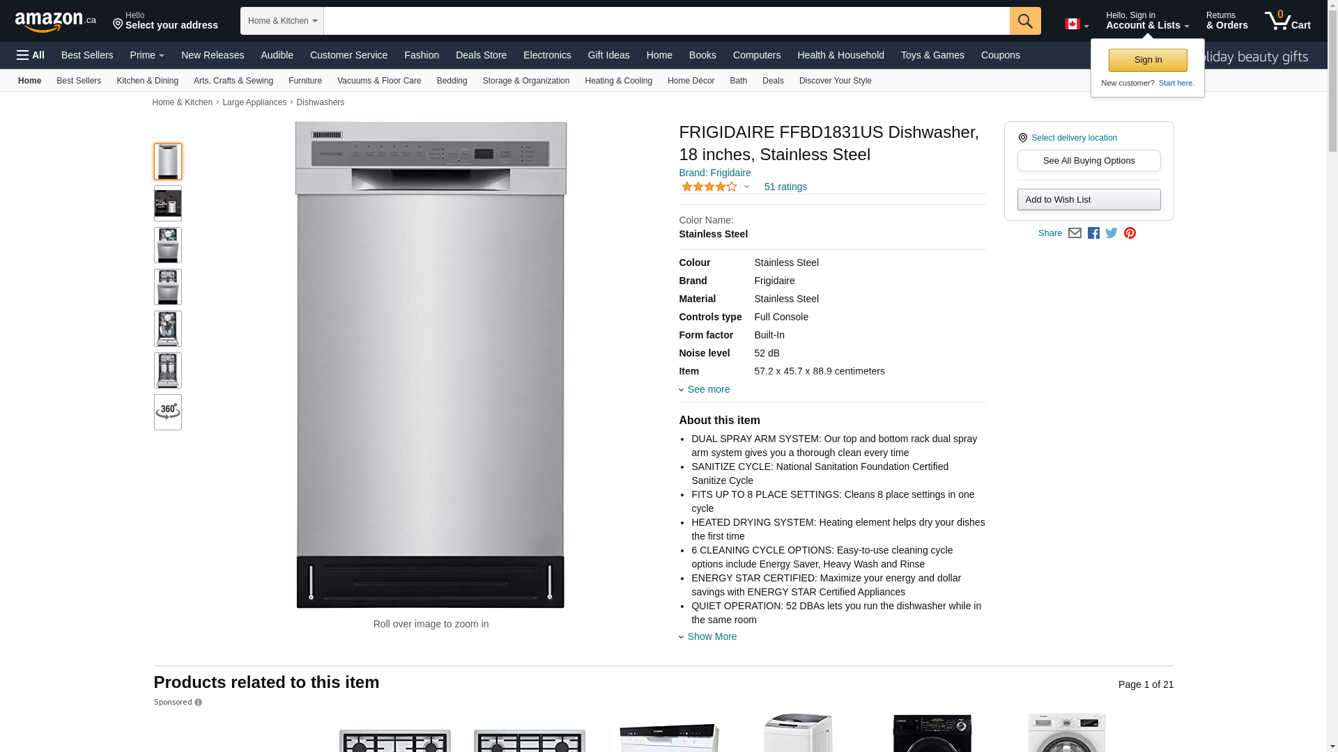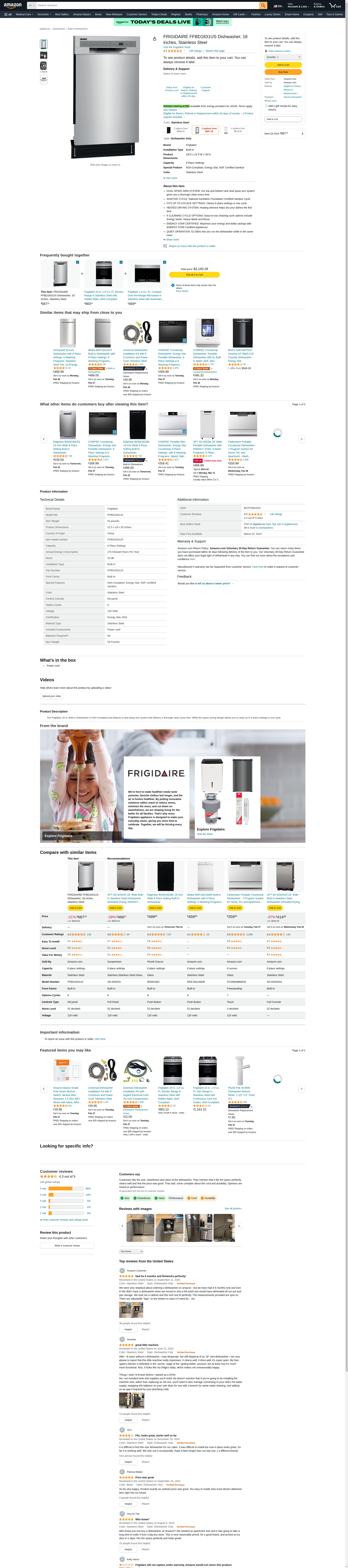 FRIGIDAIRE FFBD1831US Dishwasher, 18 inches, Stainless Steel