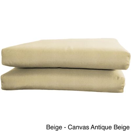 Sunbrella fabric is engineered to be long lasting, fade resistant and durable, retaining the color and vibrancy longer than other outdoor materials. The cushion cover encases the 4-inch thick, double wrapped foam and is zippered for easy removal and cleaning. Flexible fabric ties are included to secure the cushions to the chair frame. <br /> <br /> <ul> <li>Weight capacity: 300 pounds</li> <li>Weather-resistant</li> <li>UV protection</li> <li>Set includes: Two (2) cushions</li> <li>Pattern: Solid, striped</li> <li>Color options: White, off white, brown, beige, orange, blue, grey, black, green, tan, multi, brick, red</li> <li>Materials: Sunbrella acrylic fabric</li> <li>Care instructions: Machine washable, air dry</li> <li>Dimensions: 20 inches wide x 18 inches long x 4 inches thick</li> <li>Weight: 2 pounds</li> </ul> <br /> <br /> <br /> <br />