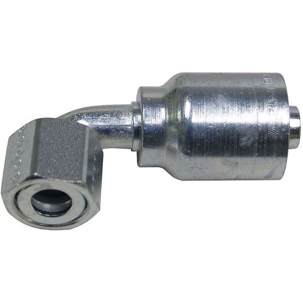 - <b>Price For:</b> Each <b>Fitting Material</b>: Steel <b>Hydraulic Fitting Connection Type</b>: Crimpable <b>Hydraulic Hose I.D.</b>: 1/2" <b>Finish</b>: zinc <b>Fitting Shape</b>: 90 Degrees Elbow <b>Hydraulic Fitting Thread Size</b>: 13/16"-16 <b>Standards</b>: SAE 100R2 <b>Length (In.)</b>: 2.59 <b>For Use With Hose Series</b>: 302, 451 <b>Item</b>: Hydraulic Hose Fitting <b>Hydraulic Fitting Thread Type</b>: Female ORS <b>Hose Dash Size</b>: 8