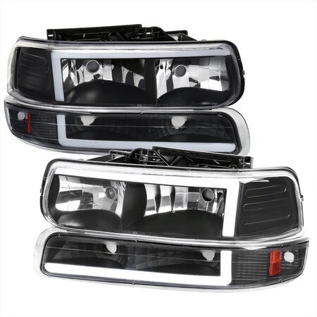 Spec-D Tuning LED Bar Black Housing Clear Lens Headlights + Bumper Lights 4PC Compatible with 1999-2002 Chevy Silverado 2000-2006 Tahoe Suburban Left + Right Pair Headlamps Assembly