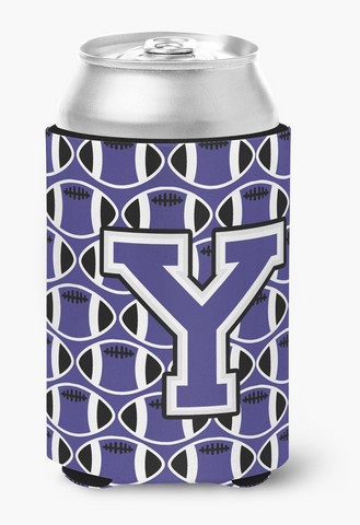 Carolines Treasures CJ1068-YCC Letter Y Football Purple & White Can or Bottle Hugger
