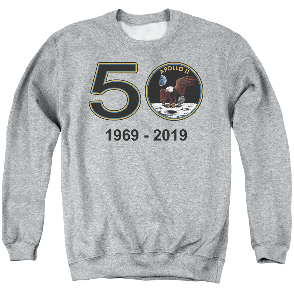 Trevco NASA157-AS-5 NASA & Apollo 11 50th-Adult Crewneck Sweatshirt, Athletic Heather - 2X