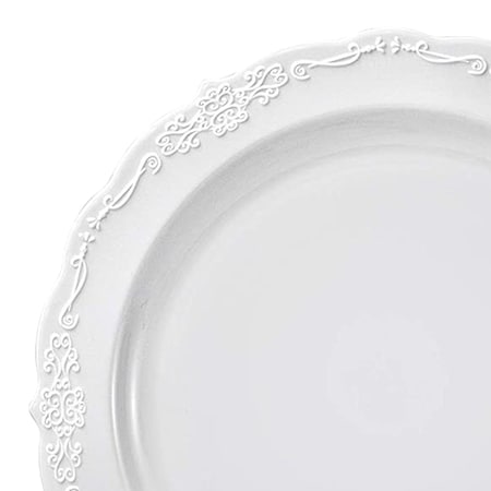 10" White Vintage Round Disposable Plastic Dinner Plates (120 Plates), 120PK