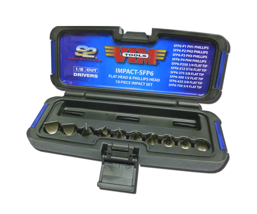 Vim Products 10pc Half Cut Screwdriver Set- 3/8 Sq. Drive IMPACT-SFP6