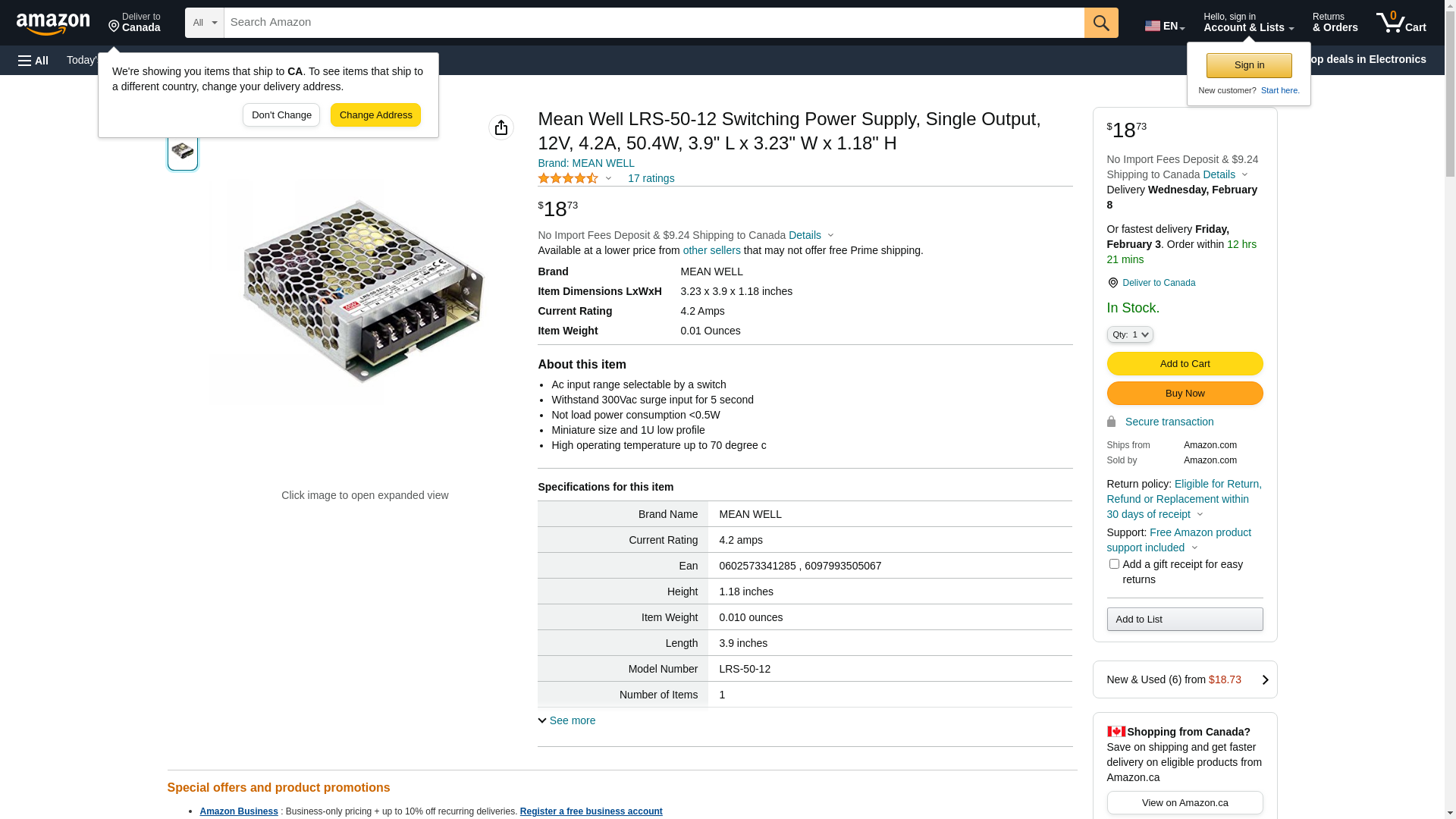 | electricautomationnetwork.com | LRS-50-12 | 1 | 1 | 1 @ $14.21 | |