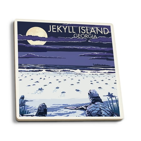 Lantern Press Jekyll Island, Georgia - Turtles Hatching (Set of 4 Ceramic Coasters - Cork-Backed, Absorbent)
