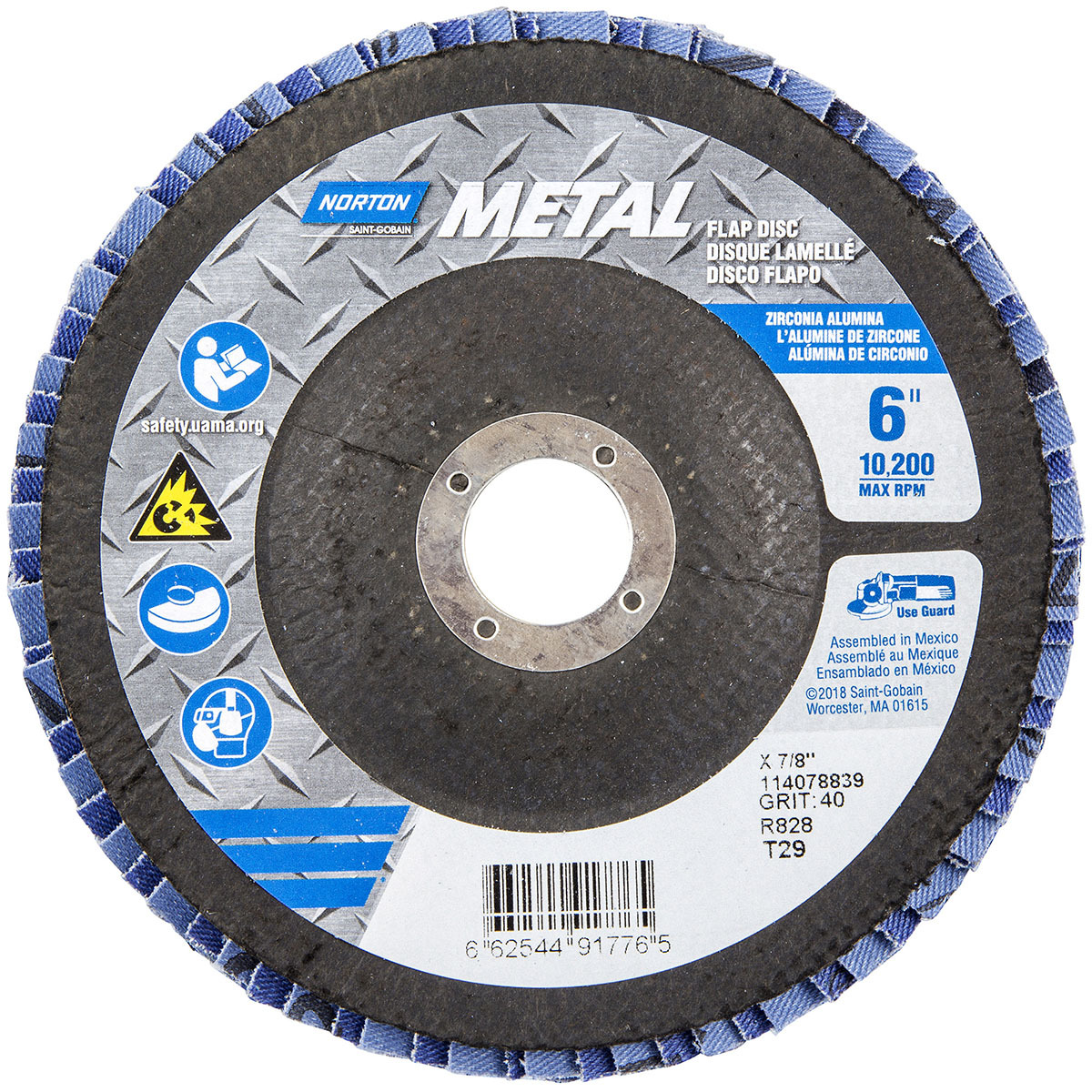 Norton 66254491776 6x7/8” Metal R828 Zirconia Alumina Type 29 Flap Discs, 40 Grit, Coarse, 10 Pack