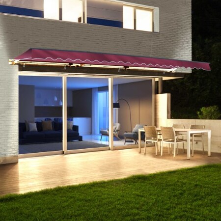 ALEKO Automatic Retractable LED Awning| 13' W x 10' L Motorized Crank Deck Awning Patio Awning| Polyester Water Resistant Canopy, UV Protection Sun Shade for Yard, Porch, Balcony| Burgundy