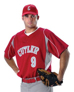 Alleson Athletic B33385502 Youth Two Button Henley Baseball Jersey, Black, Grey & White - Extra Small