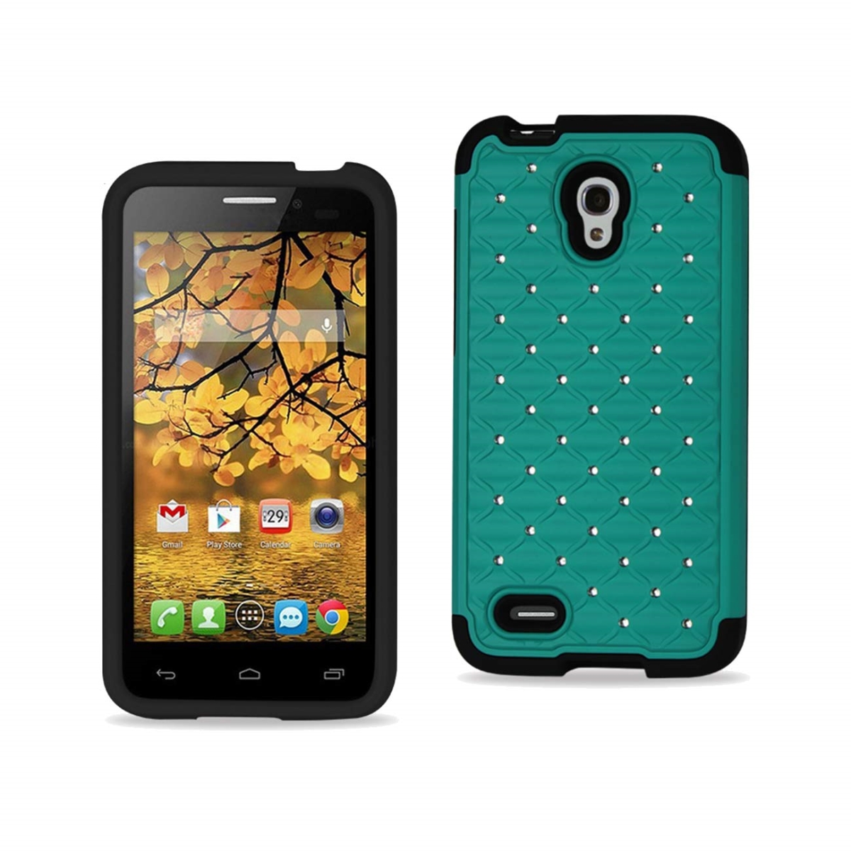 Reiko DSLCPC-ALCCONQBKGR Alcatel One Touch Conquest Hybrid Heavy Duty Jewelry Diamond Case in Black Green