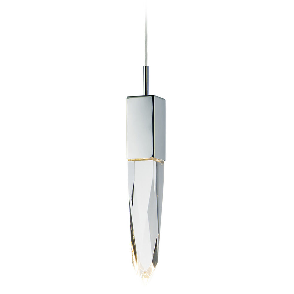 ET2 E31242-20PC Quartz Clear Beveled Crystal LED Mini Pendant Ceiling Lighting, 1-Light 6 Watt, 17"H x 5"W, Polished Chrome