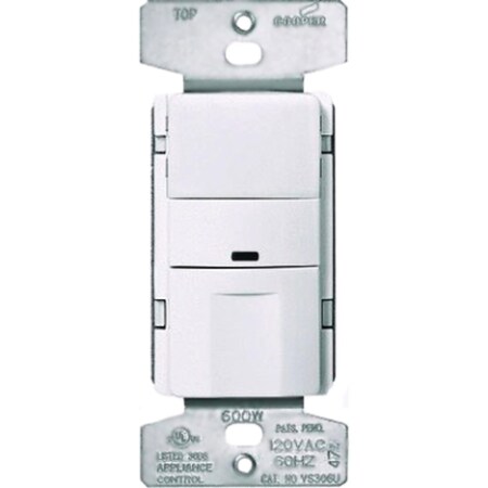 Eaton OS306U Motion Sensor Light Switch, 600 Watts, 1 or 2 switch locations,White