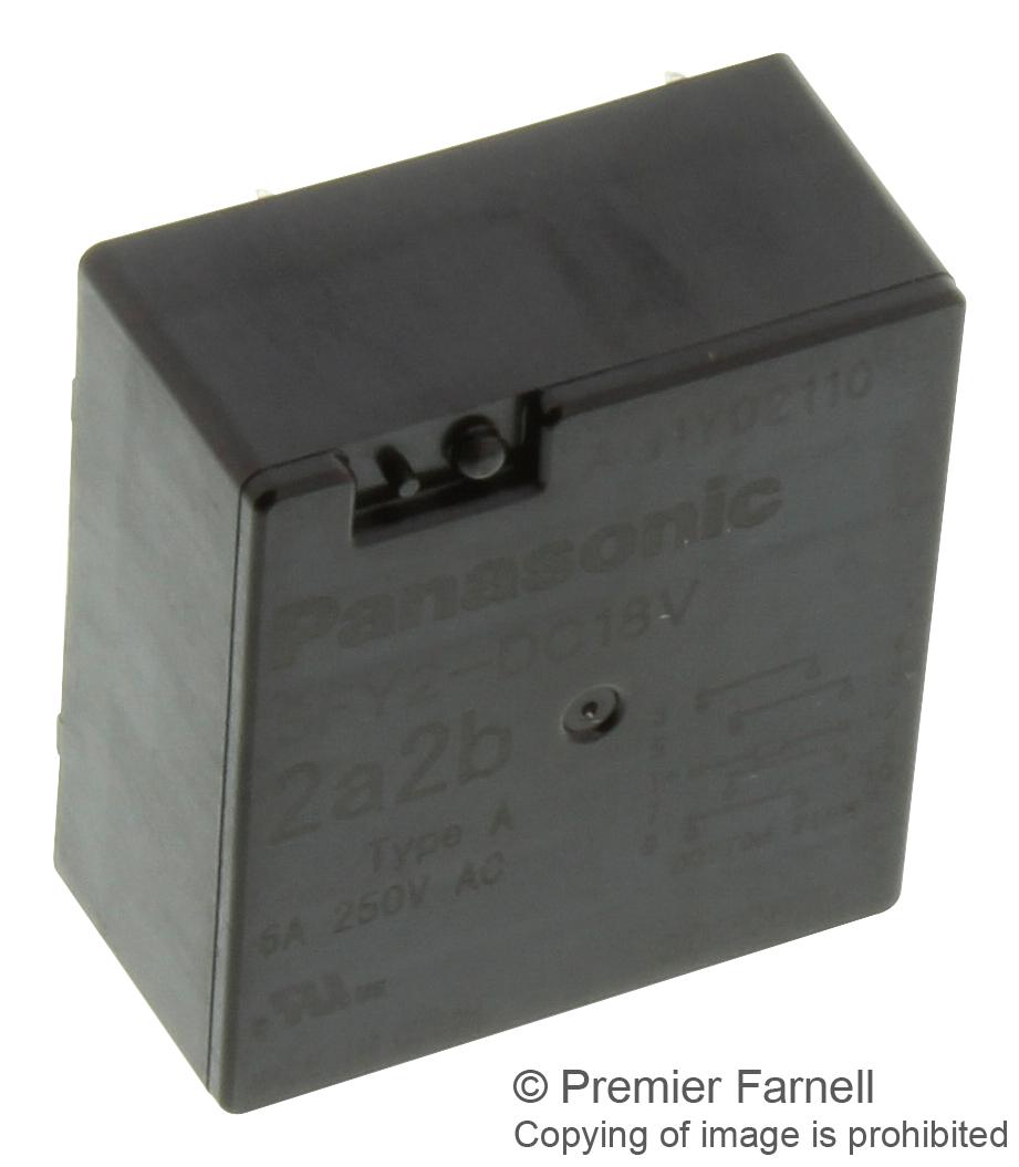 Panasonic Relay, Safety, 2No, Nc, 250Vac, 6A - SFY2-DC18V