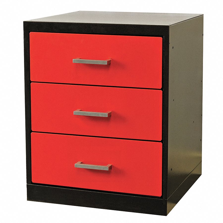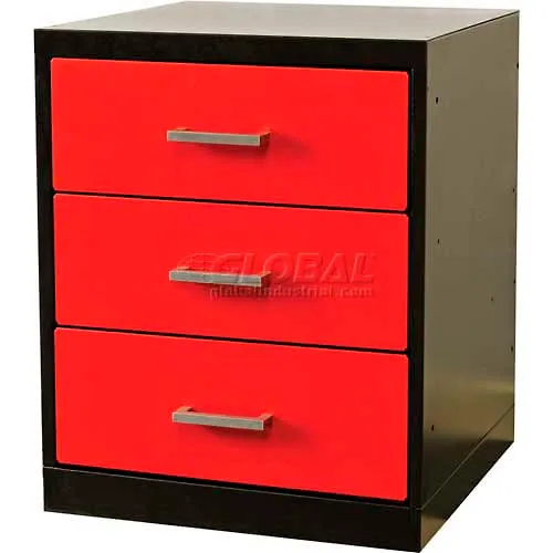 Fort Knox Workbench Pedesta -3 Drawer, 24x24x32, Black Body, Red Doors, 1W