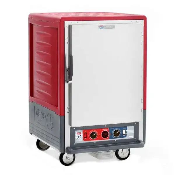 Metro Insulated C5 3 Series Holding Cabinet with Insulation Armour, 1/2 Height, Combination Module, Full Length Solid Door, Lip Load Aluminum Slides, 120V, 1440W, Red