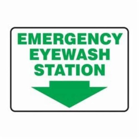 Accuform MFSD429XV Adhesive Dura-Vinyl Sign, Legend "Emergency Eyewash Station", 7" Length x 10" Width x 0.006" Thickness, Green on White