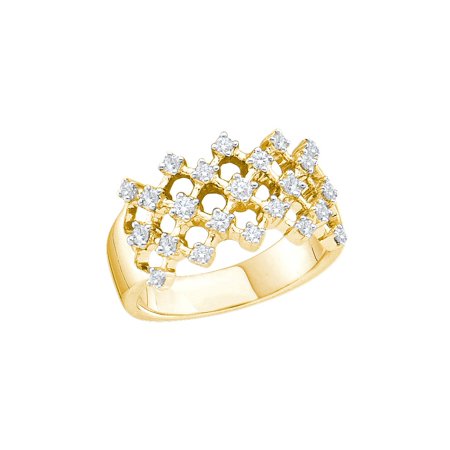 <ul> <li>14kt Yellow Gold</li> <li>1/2 Carats total weight</li> <li>5.3 grams (approximately)</li> <li>Ring size selectable. All diamonds are natural and conflict-free in origin.</li> </ul>