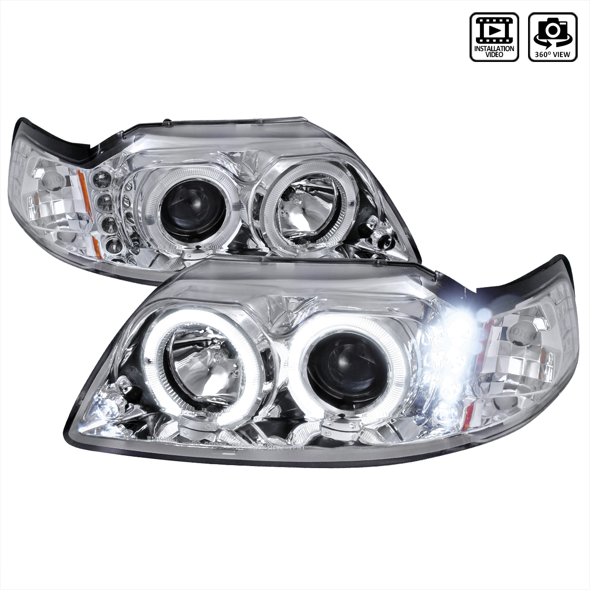 Spec-D Tuning Ford Mustang 1999 2000 2001 2002 2003 2004 LED Halo Projector Headlights - Chrome
