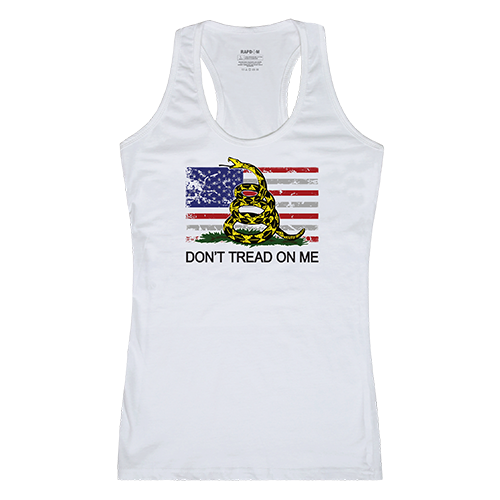 Rapid Dominance GS1-807-WHT-01 Flag with Gadsden Womens Graphic Tank Top, White - Small